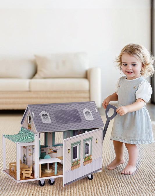 ROBUD Wooden Realistic Camper Van Dollhouse
