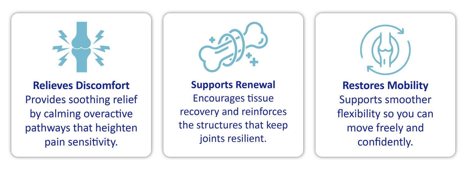 This deep, multi-layer action restores flexibility and lasting comfort — naturally.