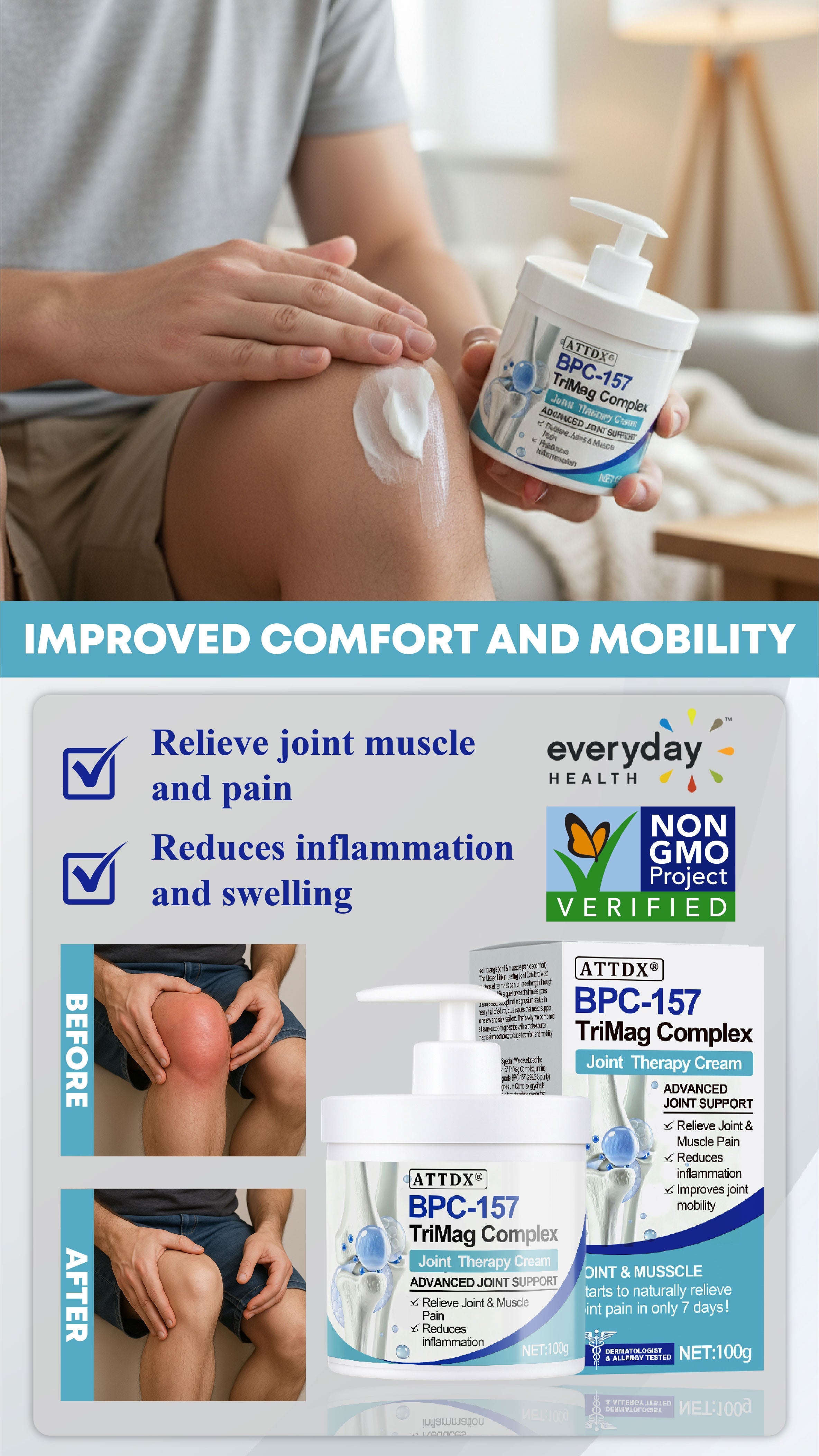 ATTDX® BPC-157 TriMag Complex Joint Therapy Cream delivers relief directly through the skin, targeting discomfort at its source. Its multi-layered action not only eases stiffness but also supports tissue renewal and resilience. Choose it for faster comfort, restored mobility, and lasting joint support beyond ordinary creams.