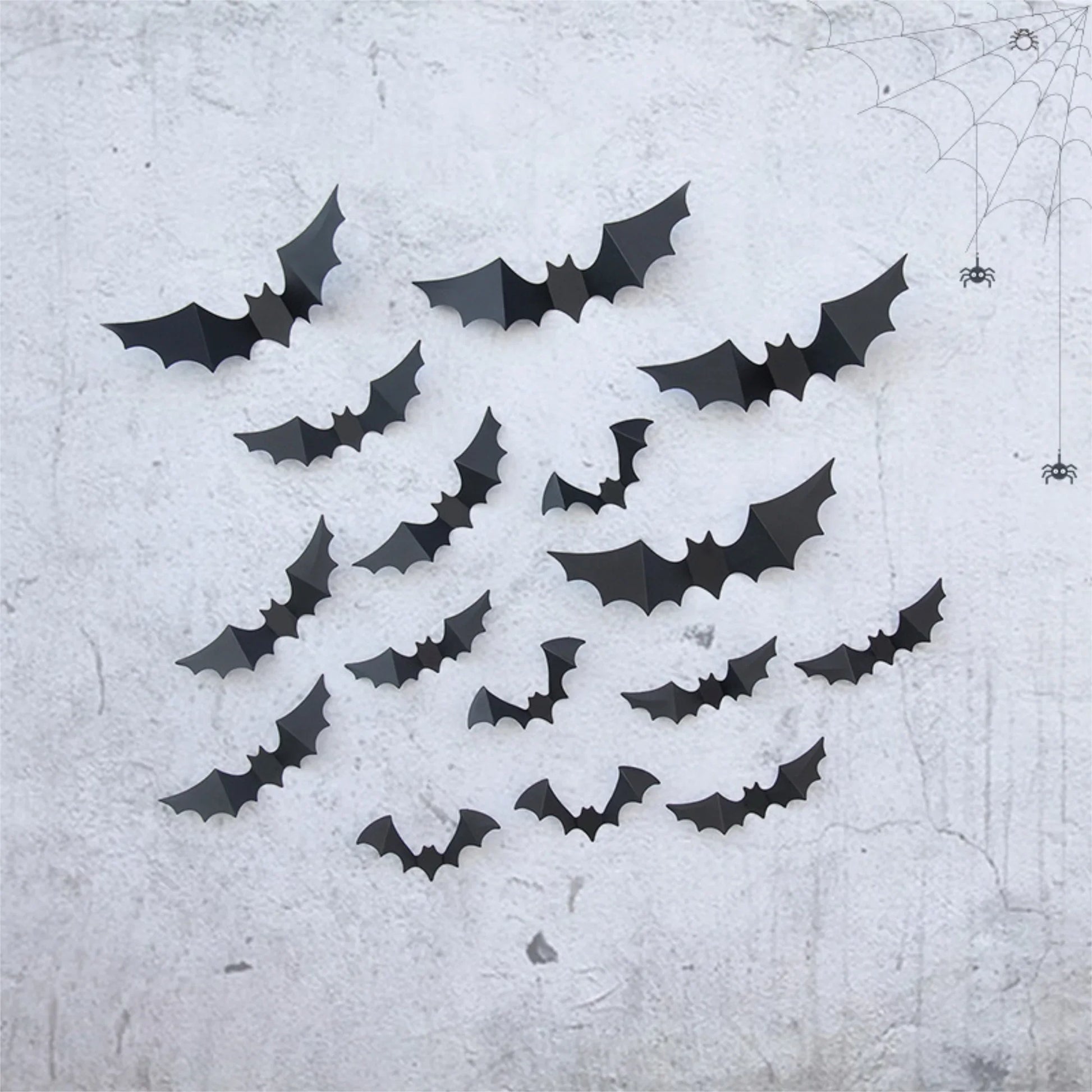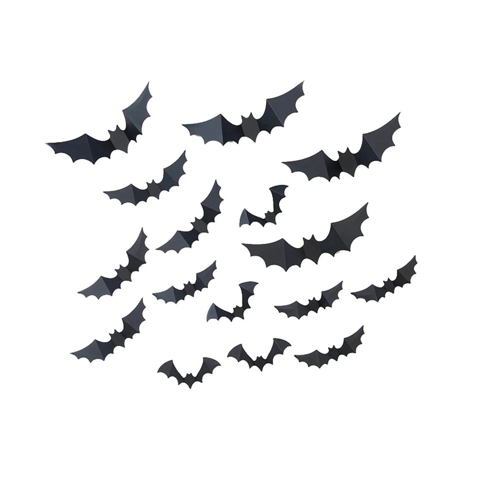 16Pcs Halloween Decoration Bats Wall Stickers PVC 3D Scary Bat Decal for Indoor Party Supplies
