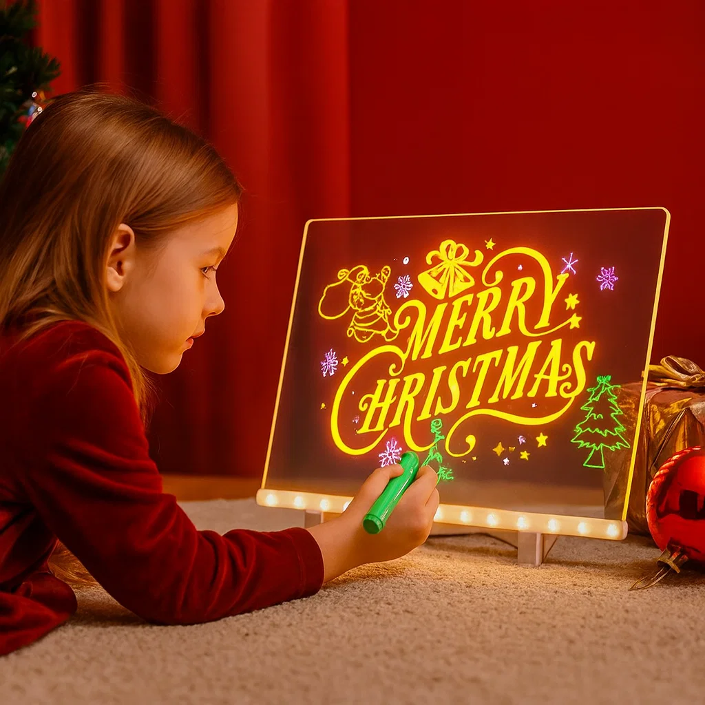 Bring home a glowing burst of creativity. Whether it’s for holidays, birthdays, or cozy family nights, this light-up acrylic board turns every drawing into a vibrant neon display.