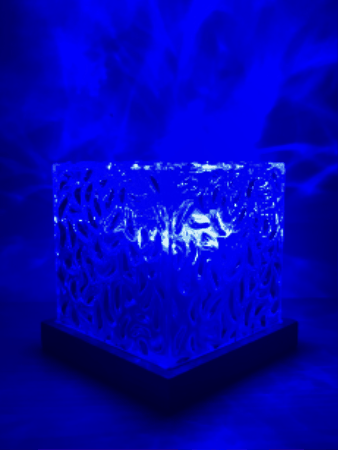 The AuroraGlow lamp is powered by an electrical outlet using a USB cable.
