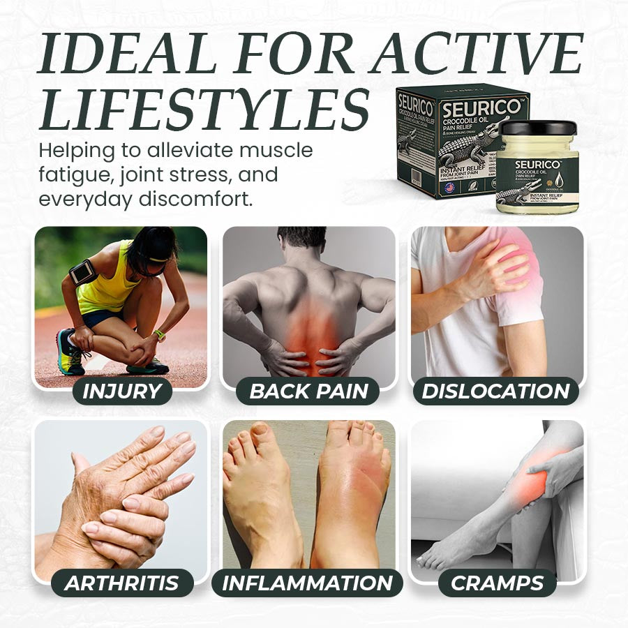 You've likely tried numerous joint pain relief products that promised quick fixes but left you disappointed. It's not your fault; they merely masked the pain, not solved the root problem.After years of research and heavy investment, we've found a natural solution:crocodile oil. Combined with modern tech, this ancient ingredient is a breakthrough for joint pain.OurCrocodile Oil Pain Relief Bone Compound Cream, rich in natural anti-inflammatories and essential fatty acids, penetrates deep to reach the pain source. Itpromotes blood flow,reduces inflammation, andrepairs tissuesfor all-round joint pain relief.