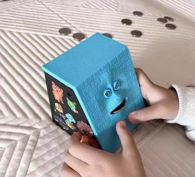 Make saving fun with the "Face Piggy Bank"! It eats coins, makes cute sounds, and even burps, adding joy to every deposit!