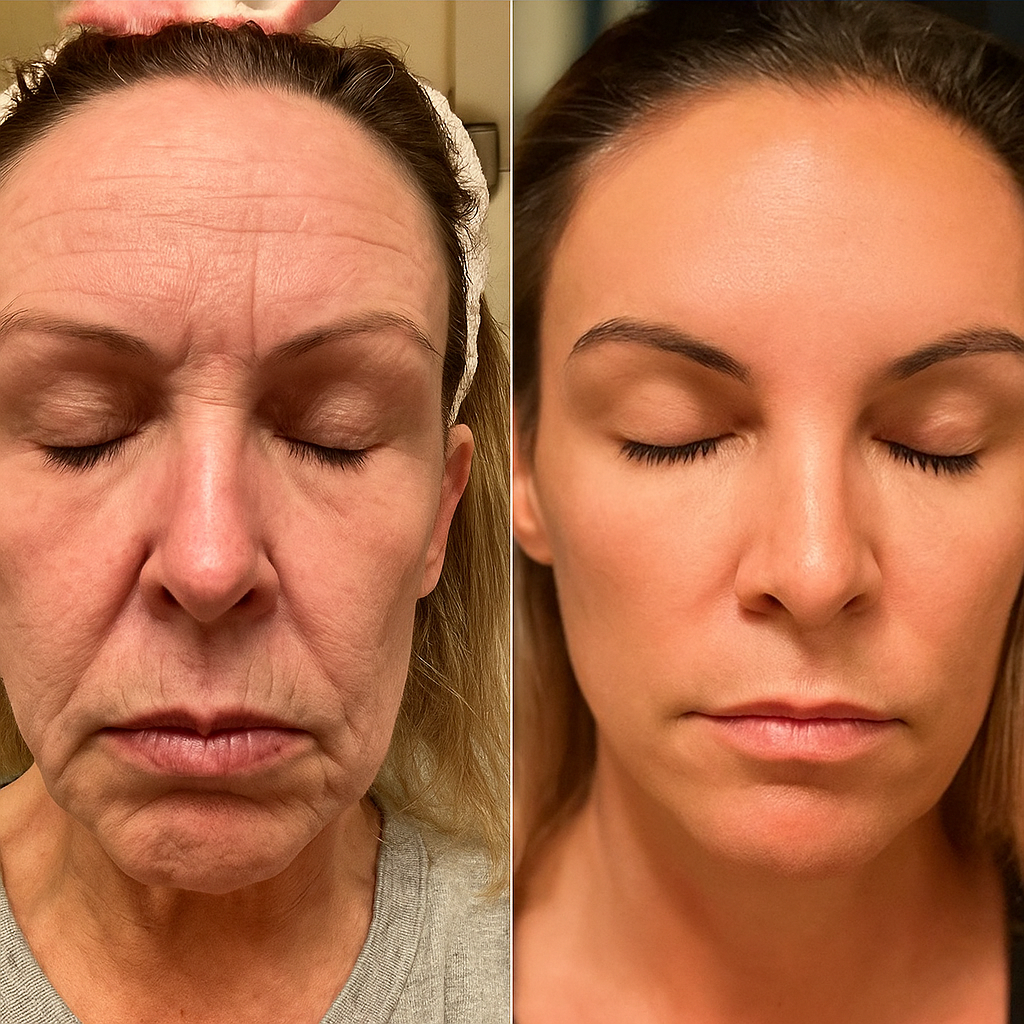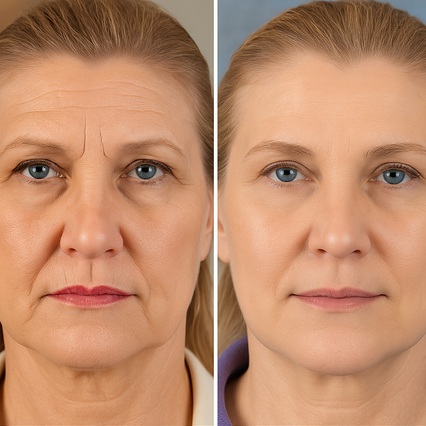 ✅ Visible improvement in forehead lines, crow’s feet, and frown lines — skin appears firmer and smoother