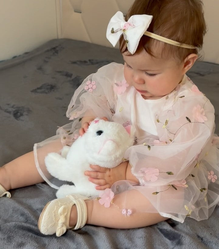 This plush kitten is sculpted with the ultimate bionic craftsmanship, andevery inch of its details replicates the animated charm of a real kitten.From the fluffy fluffy fur like clouds, to the translucent amber eyes, to thenatural stretching of the limbs, the designers intertwined scientificobservation and artistic craftsmanship to give it a sense of near-lifebreathing.
