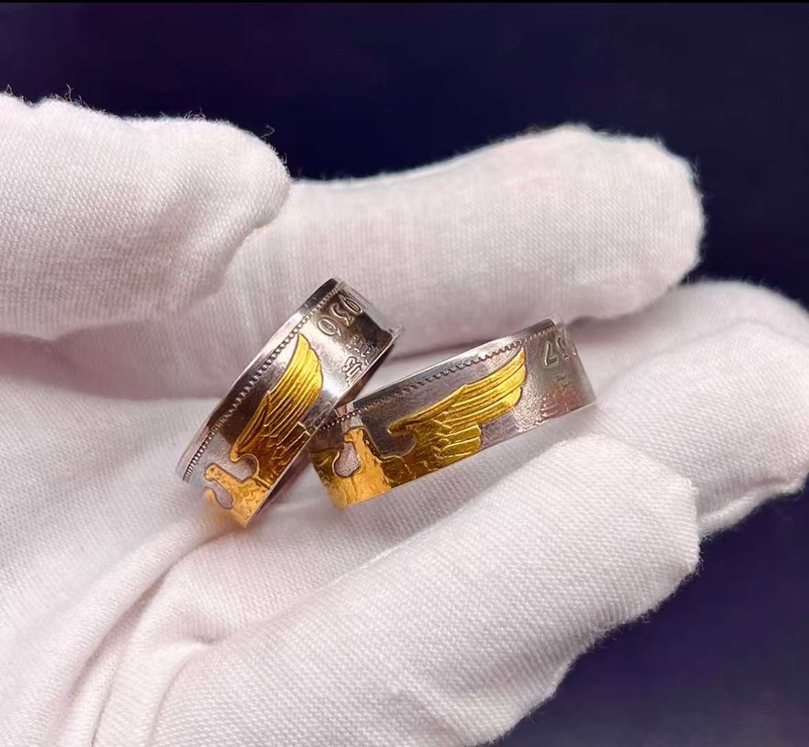 Imperial Heritage Mongolian German Mark Silver Coin Bangle Ring