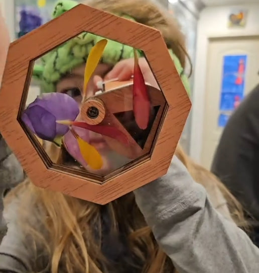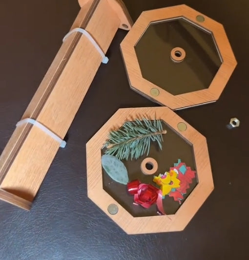 Our children's wooden kaleidoscope is quick and simple to assemble, taking just 5 minutes to complete. Unbox easily, connect, and step into the magical world of kaleidoscopes!
