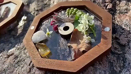 You can place dried flower petals, colored paper pieces, beads, and more to create unique visual effects.