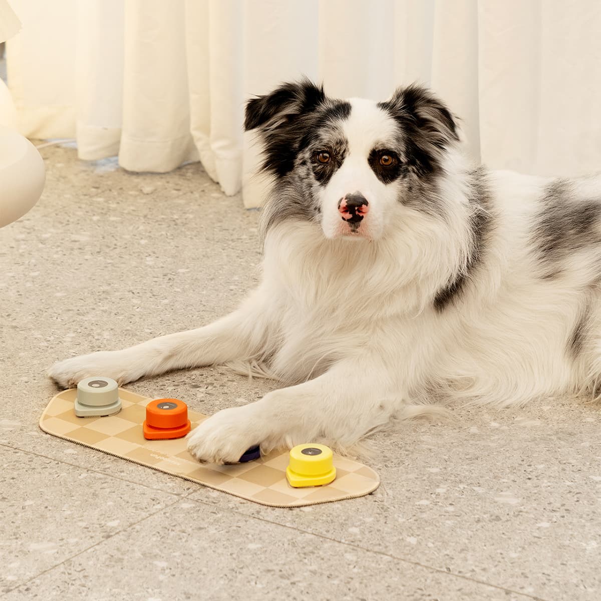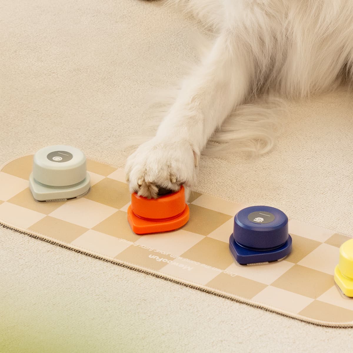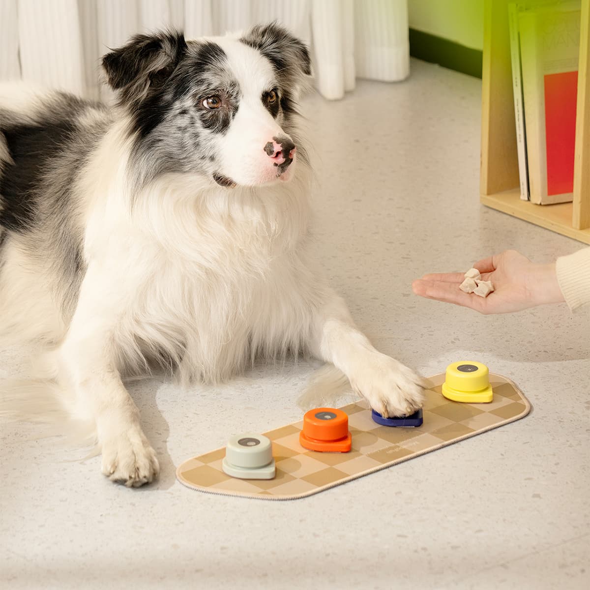 4-Pack Colorful Mini Talking Buttons with Mat enhance dog training by allowing easy recording of messages or commands. They feature high-quality sound, a non-skid mat with strong Velcro, and user-friendly recording functions. Constructed from durable ABS plastic and rubber, these buttons streamline training and improve interactions with your pet.?
