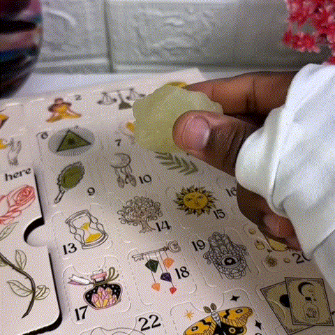 The experience goes beyond the crystals. Behind each door, you'll also find a heartwarming holiday affirmation or a practical crystal tip.