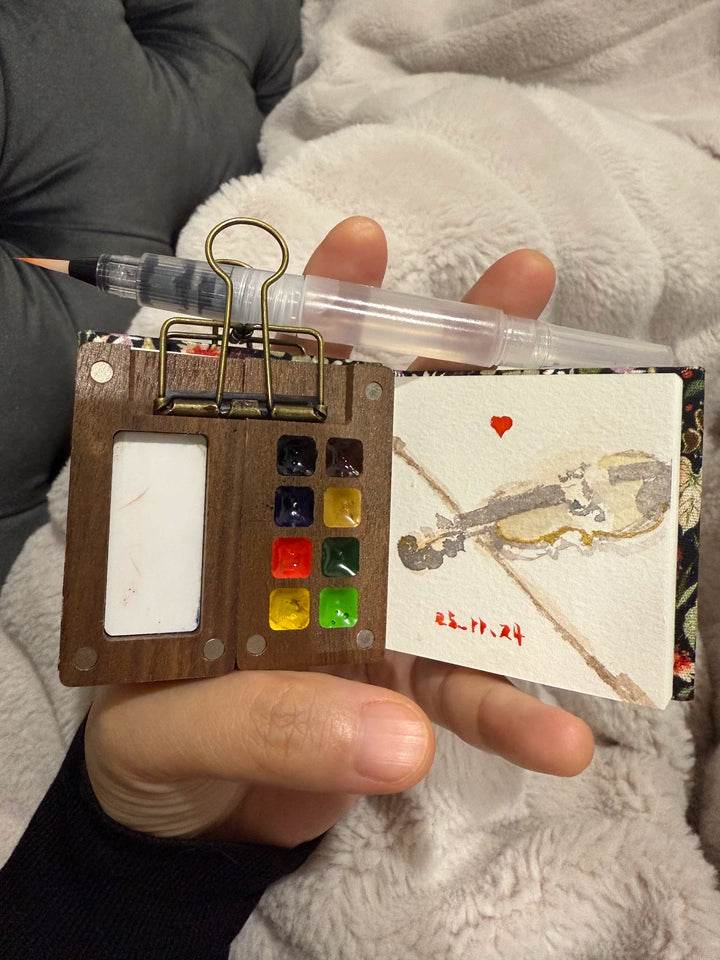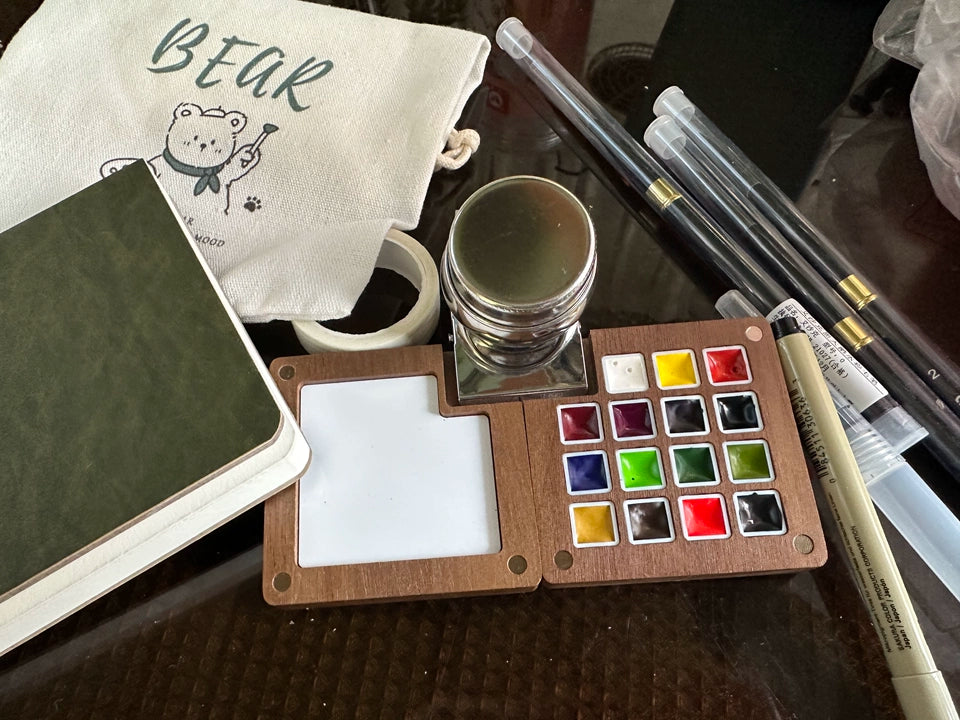 Crafted from walnut, the palette is designed for durability, ensuring a reliable painting experience. The included sketchbook features quality paper for optimal paint application.