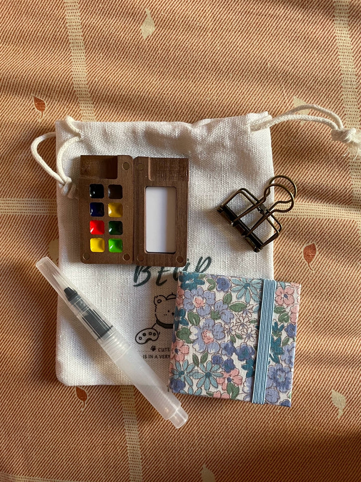 The kit includes a watercolor palette, a sketchbook, and a metal clip, providing everything needed for artists to create stunning watercolor paintings on the go.