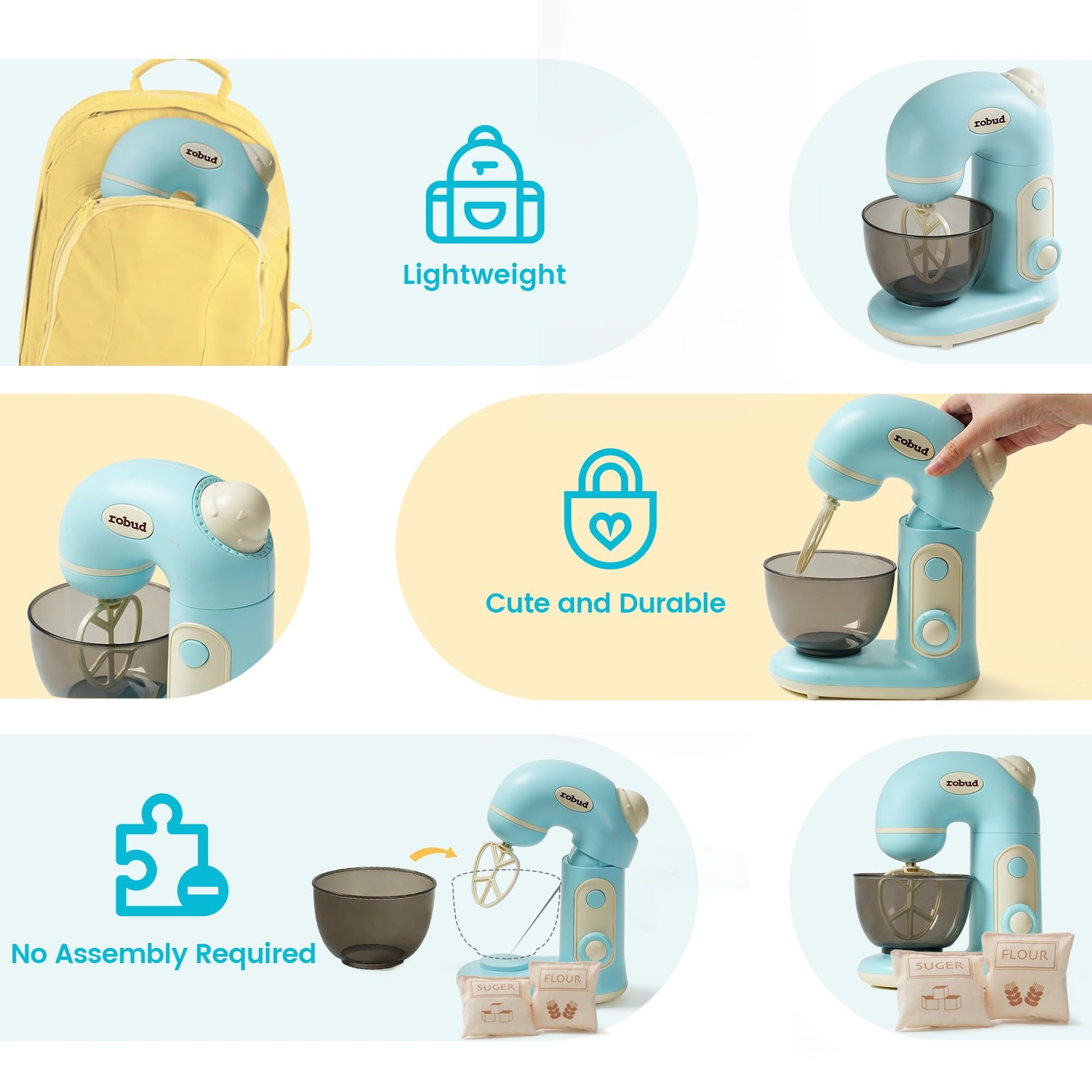 Cute Design: With a soft combination of blue and beige, this toy mixer gives off a warm and inviting feeling, looking like it came straight out of a fairy tale. Its design is not only attractive to children but also stimulates their imagination. Whether it's decorating a playroom or serving as a daily toy, it is a charming little item full of appeal.