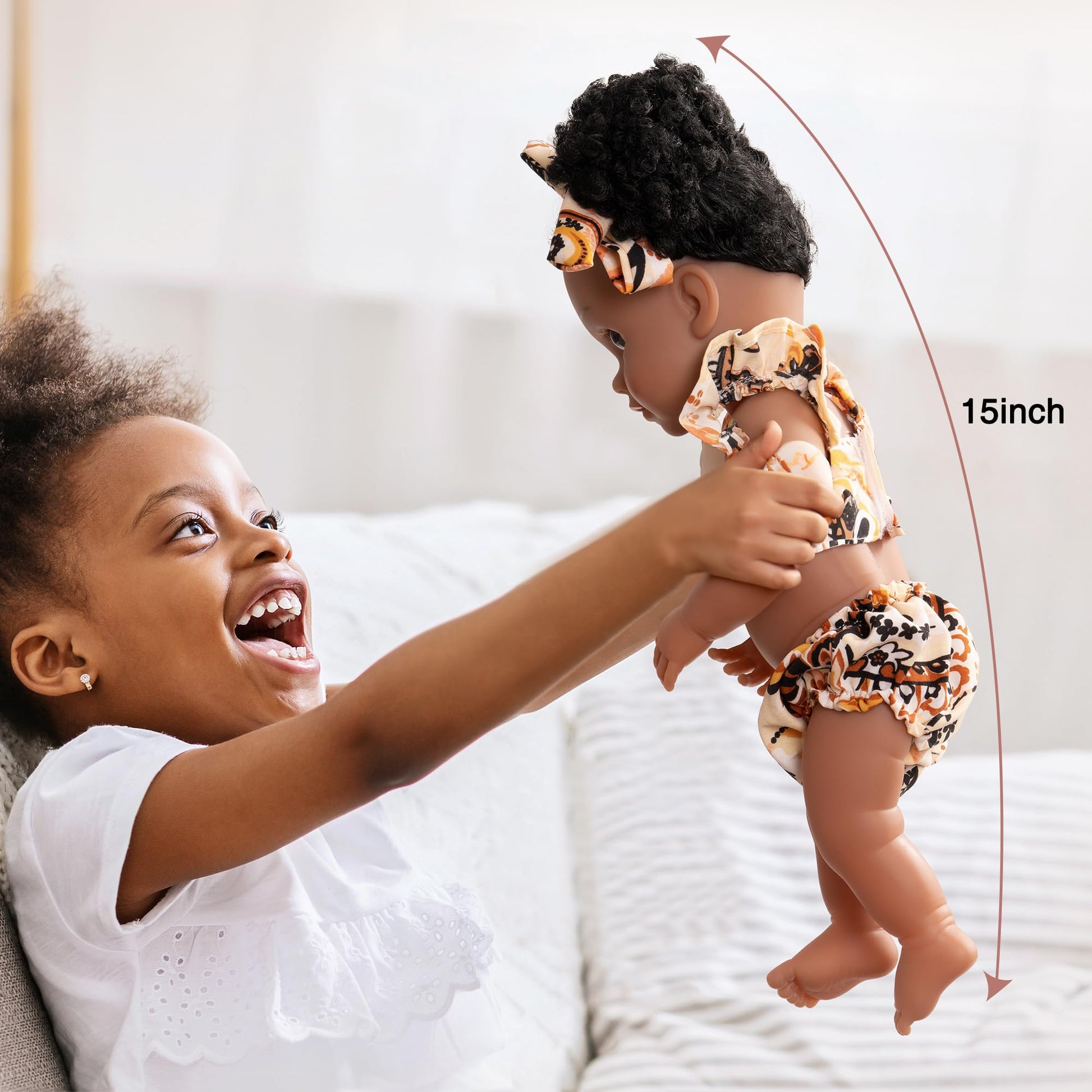 Realistic & Cuddly Baby Design£ºThis 15-inch baby doll is crafted with detailed, realistic features. With its soft, realistic skin tone and gentle facial expression, this doll offers a comforting and engaging playtime experience for children.