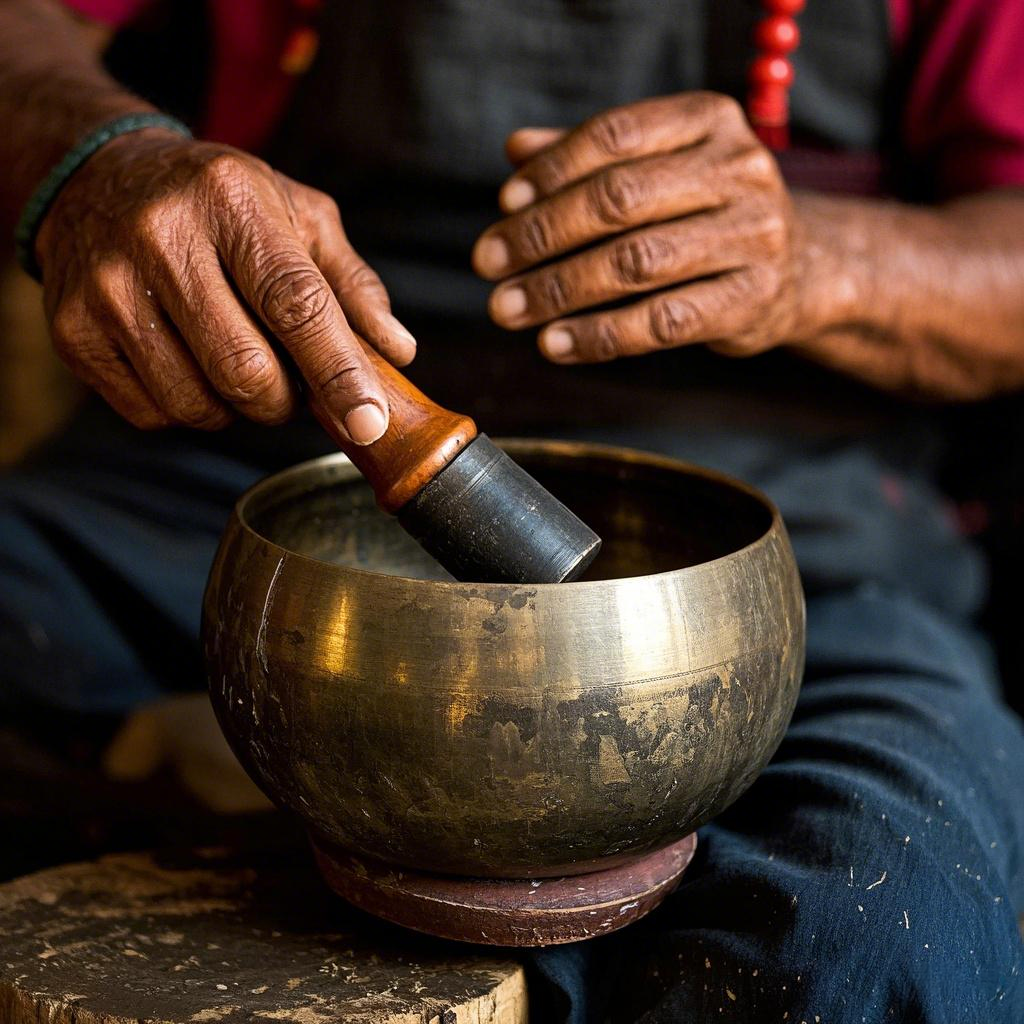 Each singing bowl is meticulously handcrafted by skilled artisans at the foothills of the Himalayas, adhering to centuries-old Nepalese techniques, ensuring its resonance is as unique as its owner. Every hammered groove imbues the bowl with its own character and soul, while the precise blend of metals and the artisan's dedication make each piece one-of-a-kind. From the intricate patterns along the rim to the deep, resonant overtones, no detail is overlooked. This is not just a singing bowl; it is a spiritual instrument, infused with the passion and wisdom of its maker, designed to bring profound peace and healing to your life.