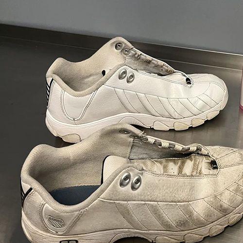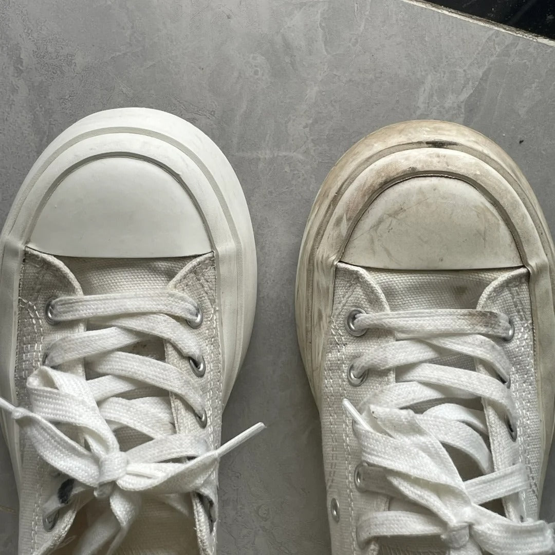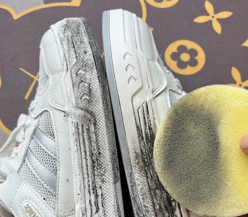 Cleaning white shoes is easy now—just apply, wipe, and they shine again!