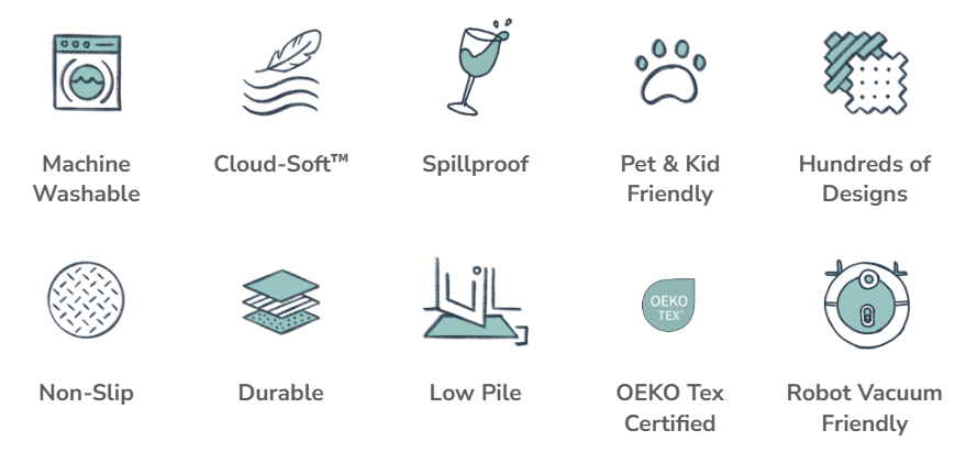 Welcome to the comfort zone. Skid resistant backing helps the rug stays in place well, premium recycled polyester for a durable yet cozy finish. With our rugs beneath your feet, you’re greeted with a constant reminder to take it easy and relax.
