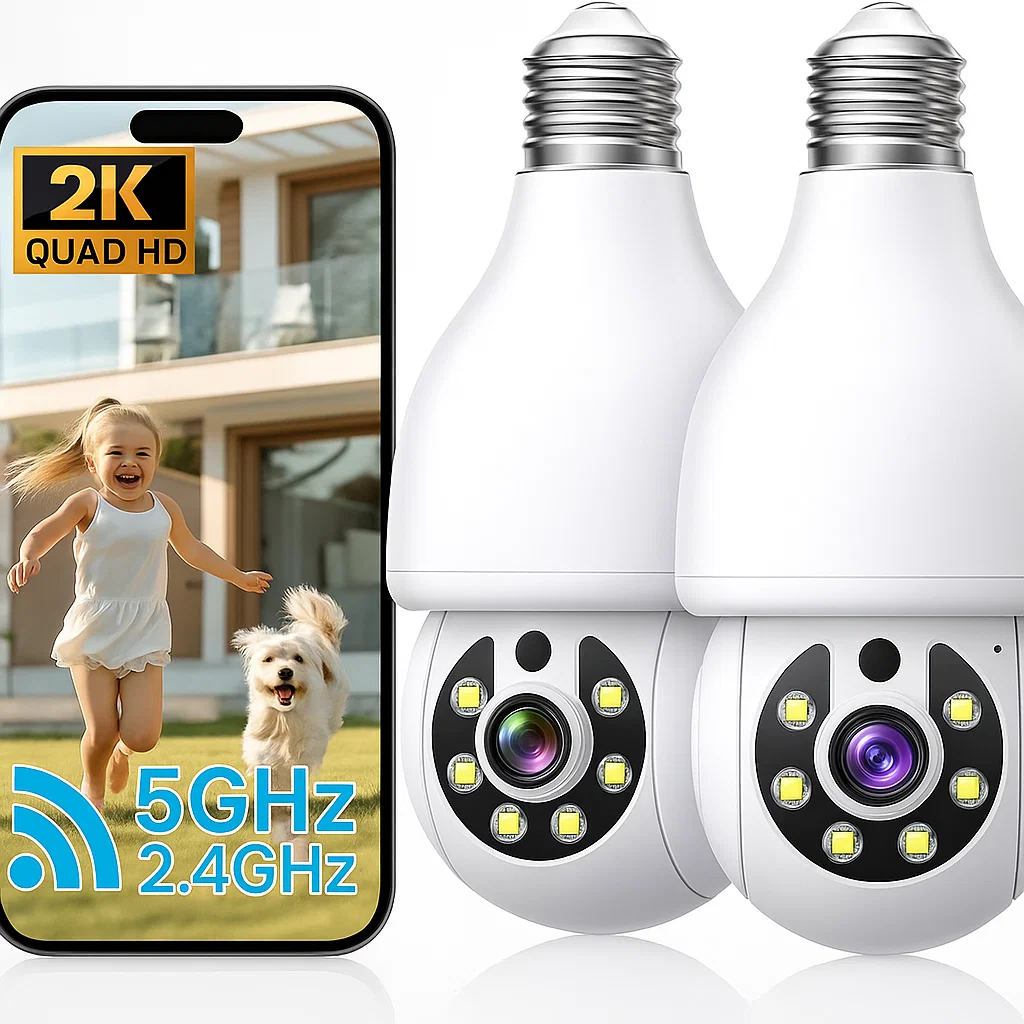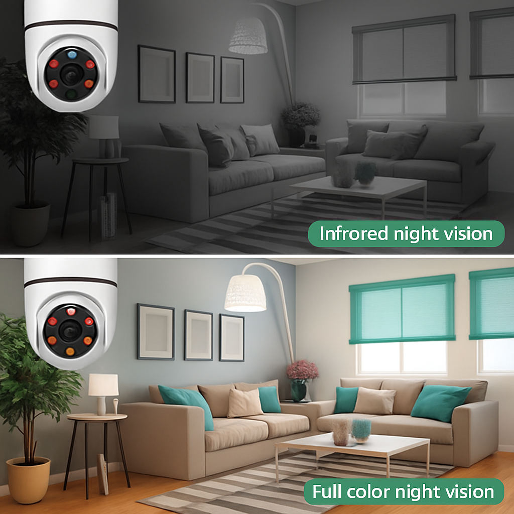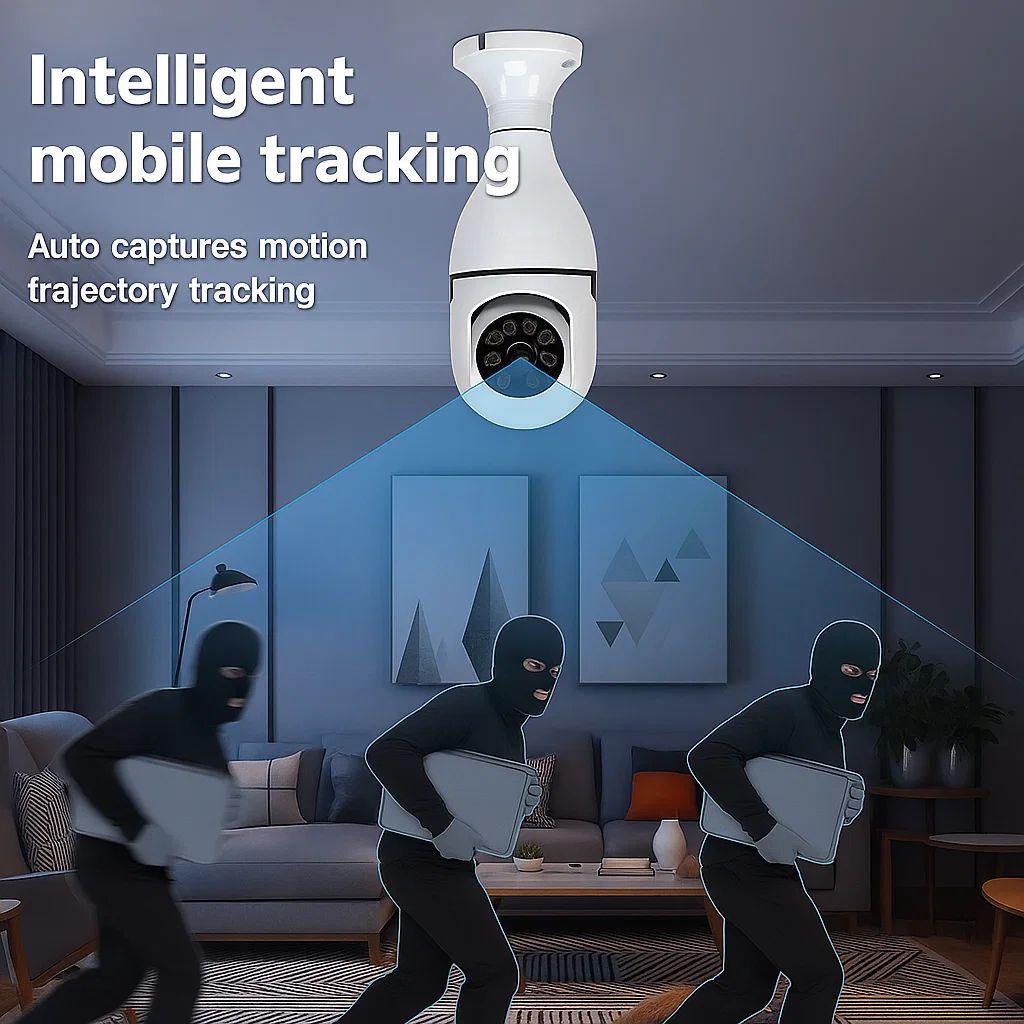 Smart bulb camera with 360° monitoring, remote control, and two-way audio — peace of mind, anytime.