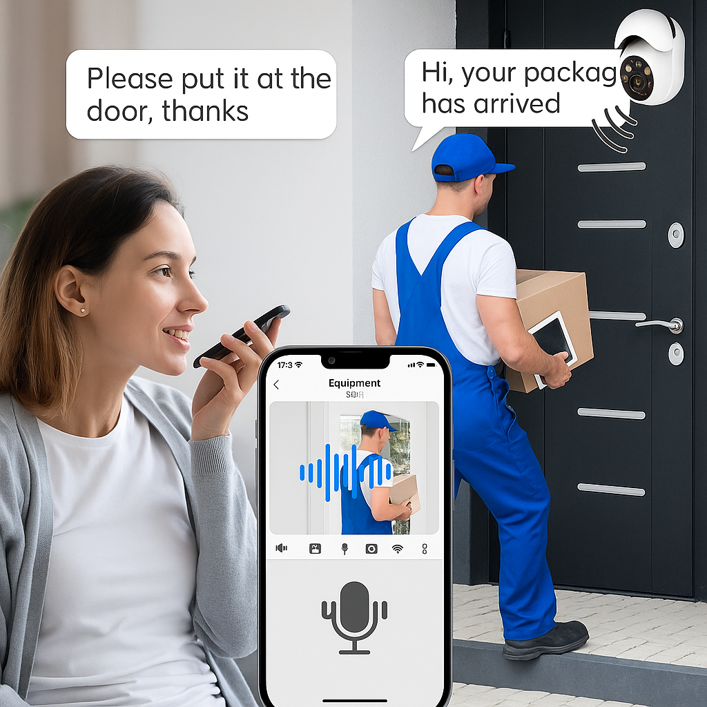 Yes. It includes a built-in microphone and speaker for real-time two-way communication.