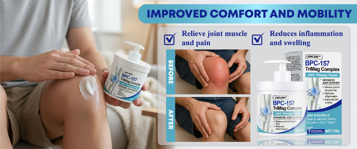 LBMLBM™ BPC-157 TriMag Complex Joint Therapy Cream delivers relief directly through the skin, targeting discomfort at its source. Its multi-layered action not only eases stiffness but also supports tissue renewal and resilience. Choose it for faster comfort, restored mobility, and lasting joint support beyond ordinary creams.