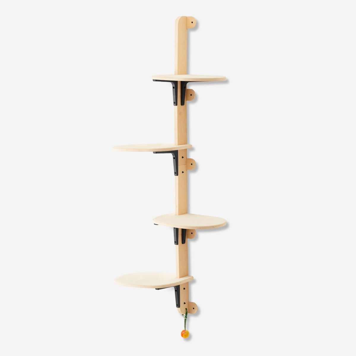 The Advanced Wall Mounted Bushwick Cat Shelf delivers a space-efficient solution for cat owners in small homes. This shelf, with its cat stairs and chic climber, transforms any area into a playground for your feline friends. Each plank boasts a removable cushion for enhanced comfort.