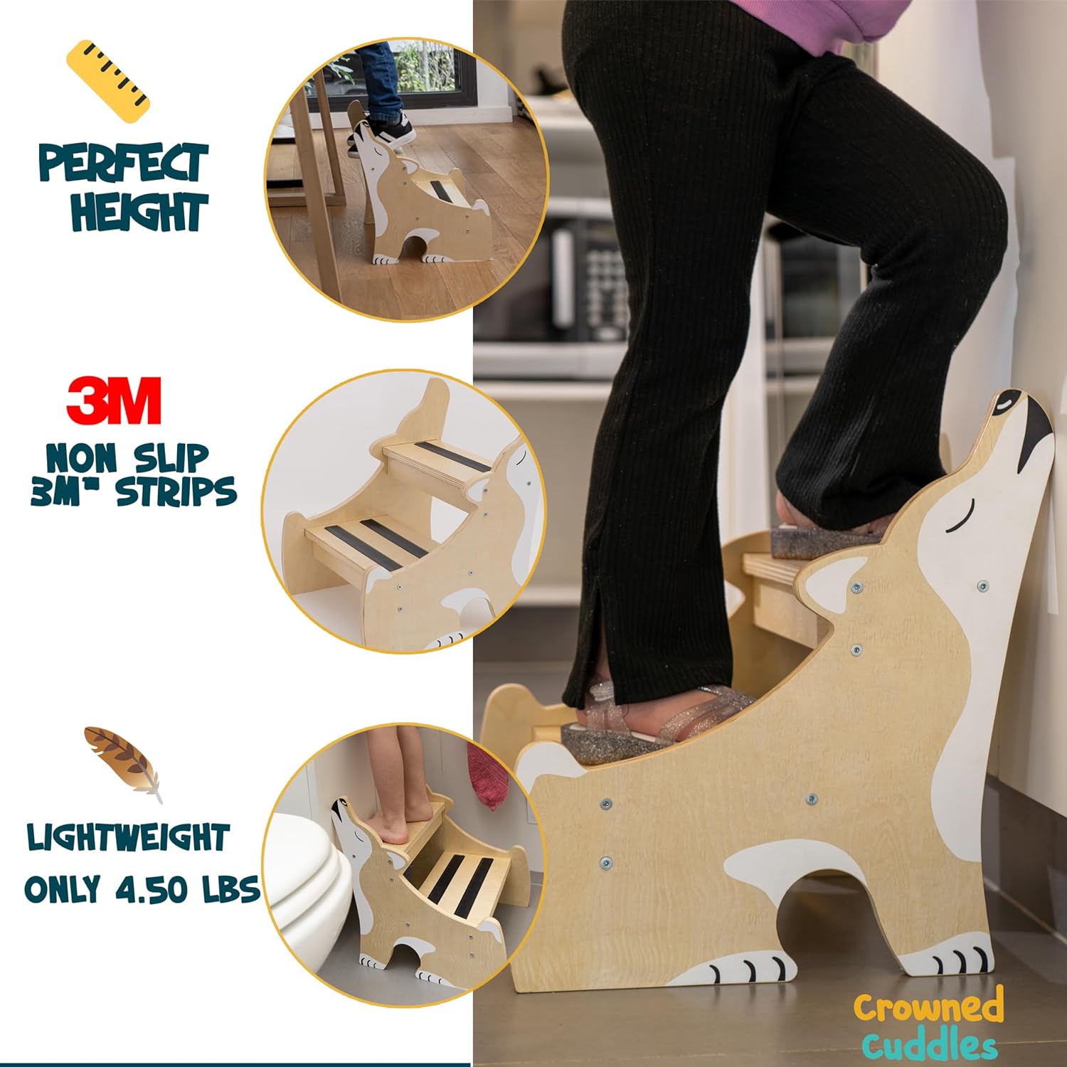Crowned Cuddles - Premium Bamboo Wooden Step Stool for Kids